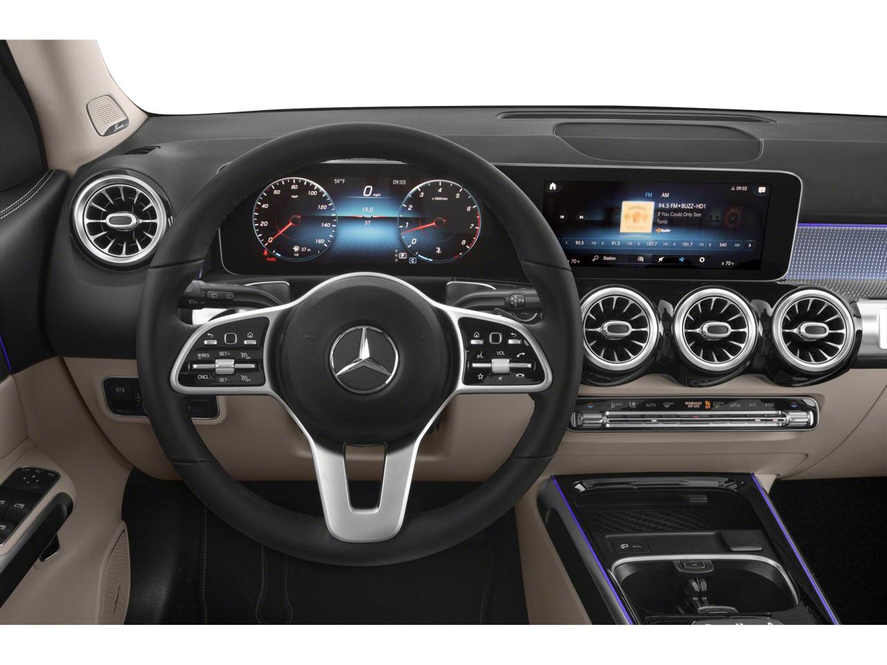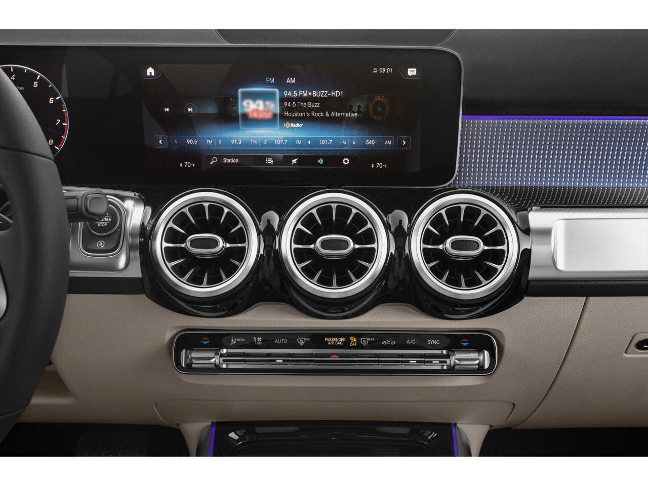 • Radio: Mercedes-Benz User Experience (MBUX) -inc: 7" touchscreen multimedia display, voice control including natural language understanding and keyword activation (Hey Mercedes), Bluetooth® connectivity, Mercedes me connect services w/trial period, 4 USB-C ports (note: adapter will be required to connect to USB-A devices)